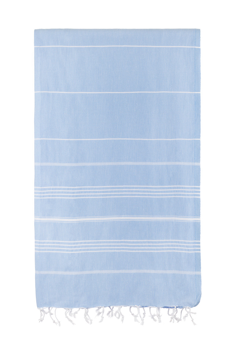 Bring the serene beauty of a cloudless day into your daily routine. This stunning sky blue Turkish towel offers the ideal choice for anyone seeking a versatile, calming colour that complements any bathroom aesthetic. Luxuriously soft and absorbent, it's the perfect addition to your home or beach.